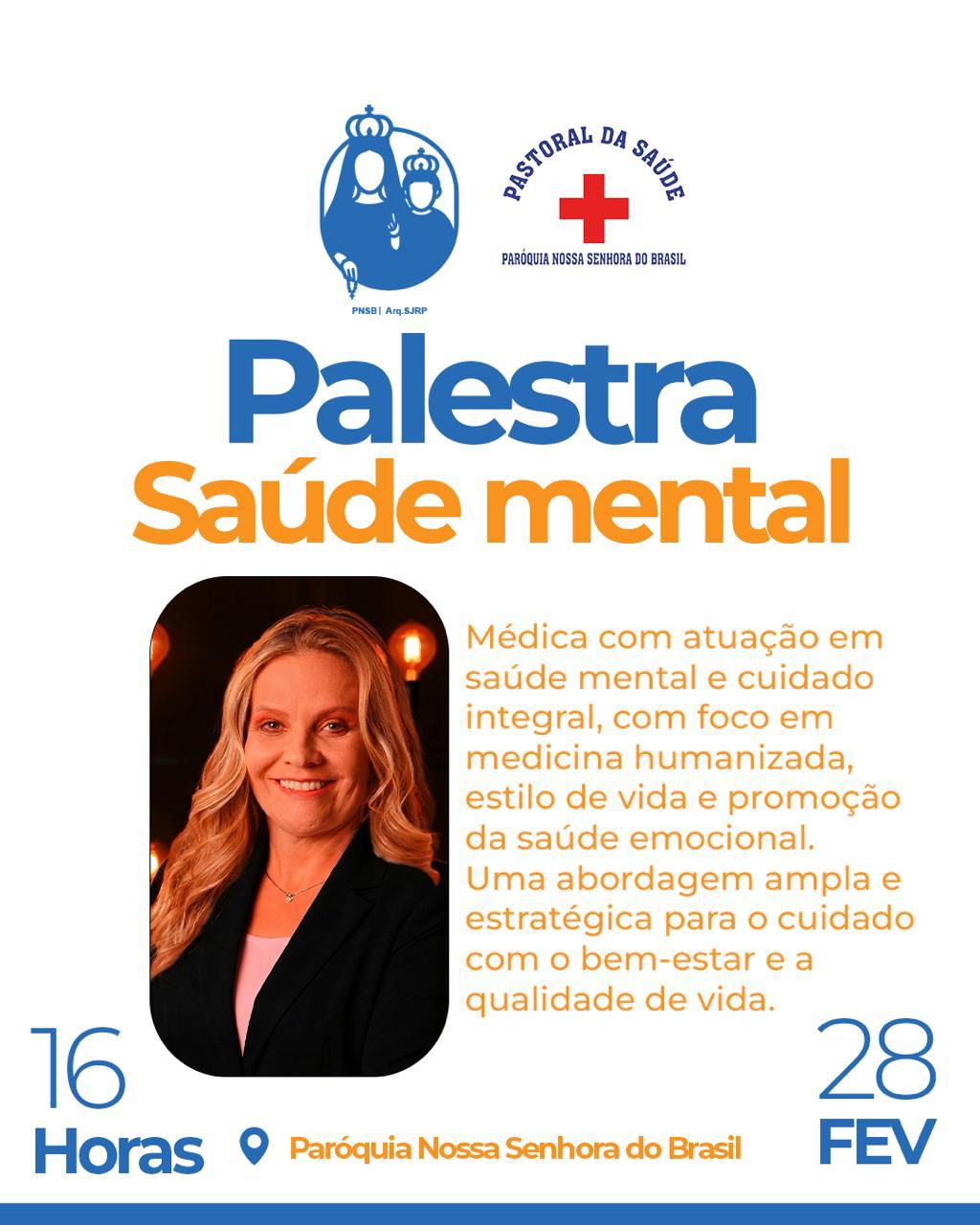 A Pastoral da Saúde da Paróquia Nossa Senhora do Brasil promoverá, no próximo dia 28 de fevereiro, às 16h, uma palestra especial com o tema “Saúde Mental”.